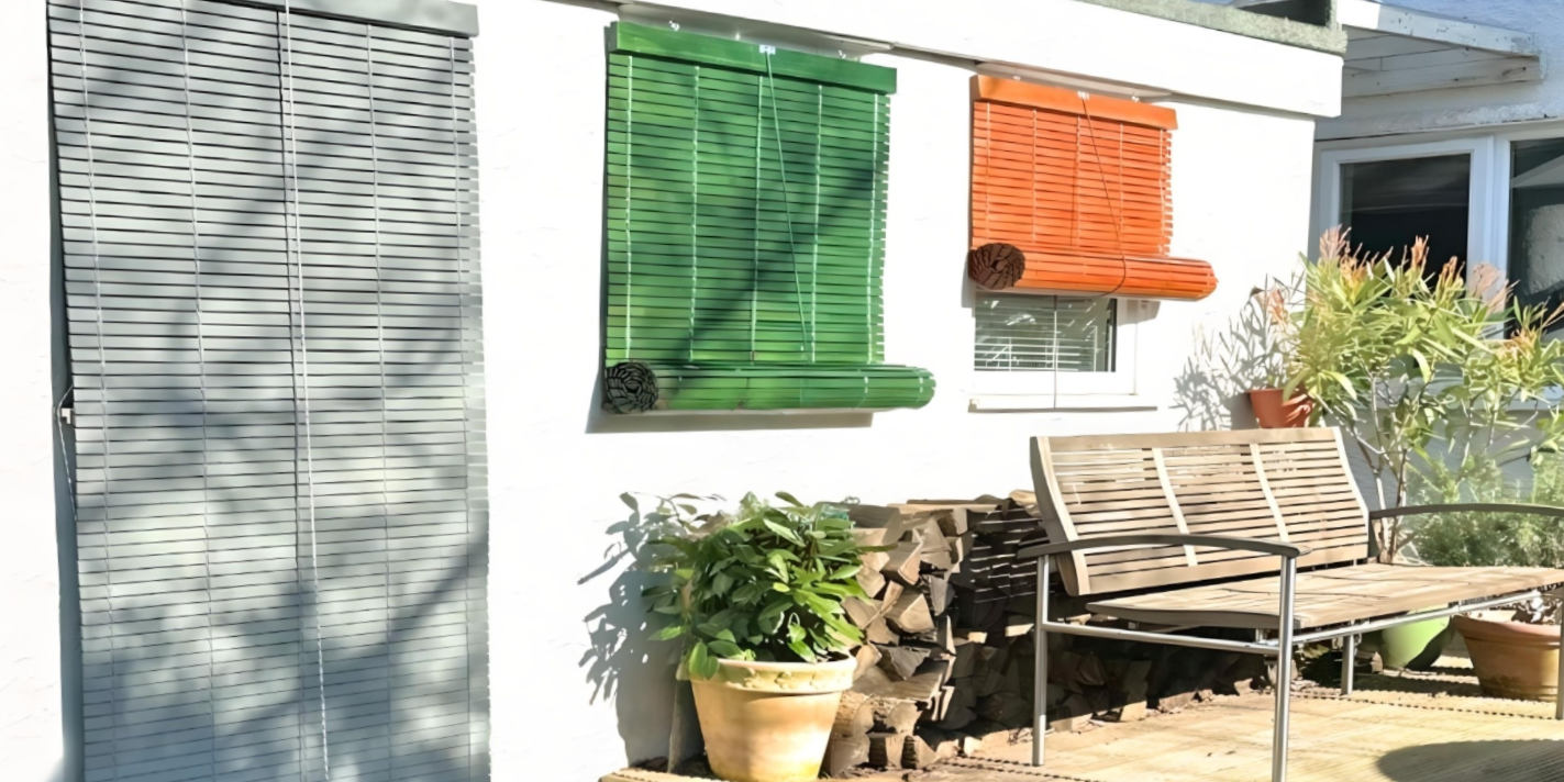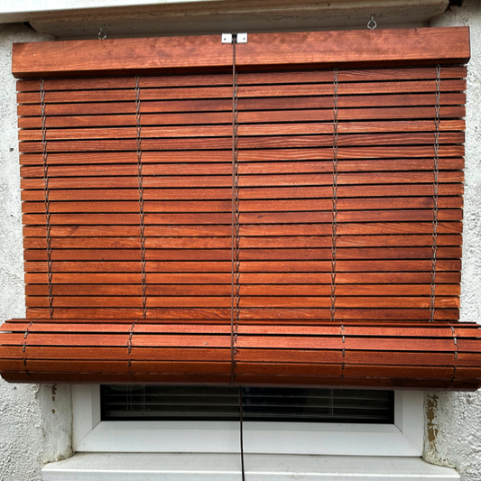 The Green Blind outdoor wooden roller shades are an energy efficient way of keeping your home cool in sunny weather. Designed to be fixed on the outside to block the heat before it gets through the glass. Natural cooling without air conditioning saves you money whilst helping the planet.